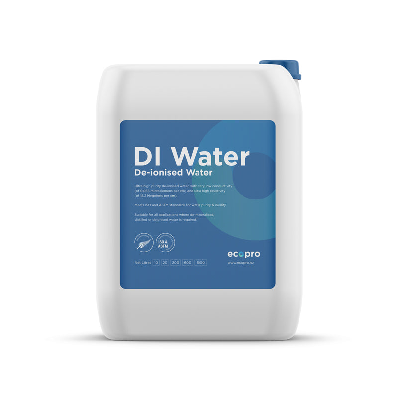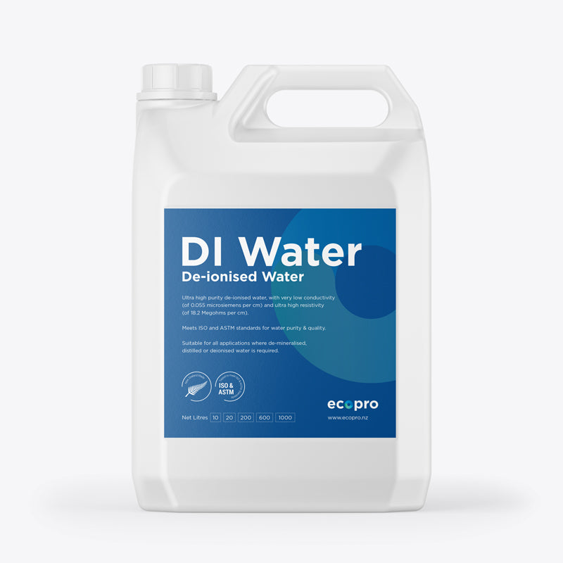 Ultra high purity de-ionised water, with very low conductivity (of 0.055 microsiemens per cm) and ultra high resistivity (of 18.2 Megohms per cm).